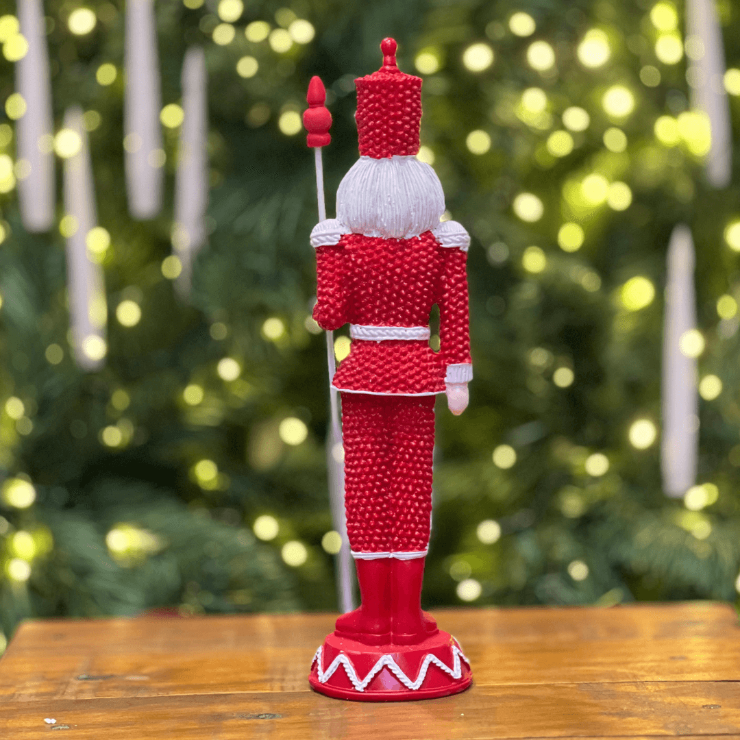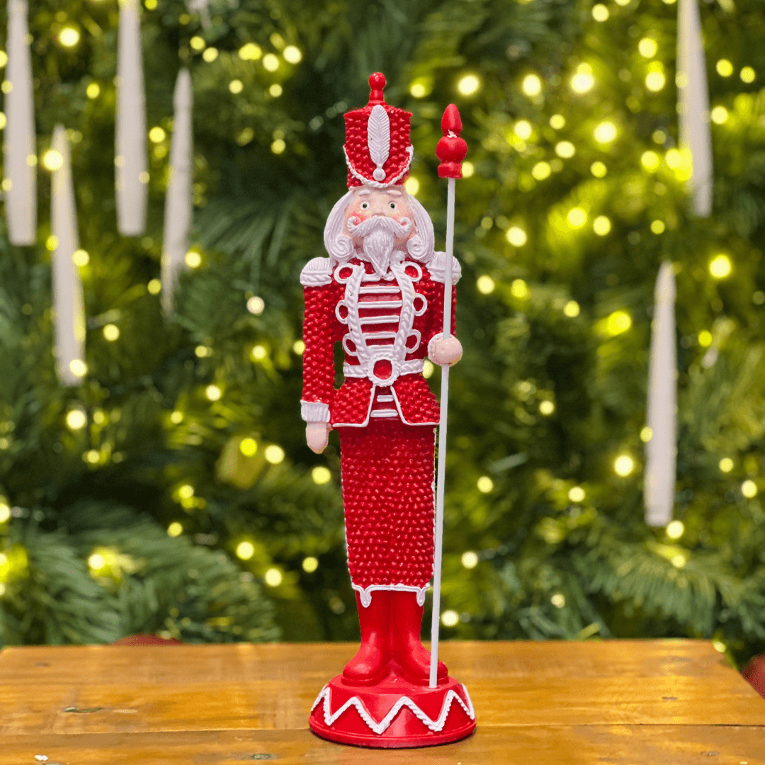 Quebra-Nozes Natalino Vermelho e Branco de Resina 30cm