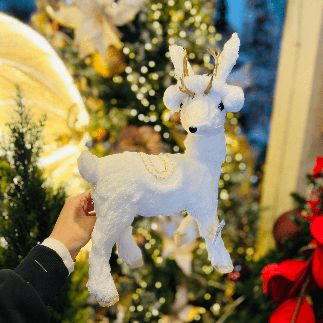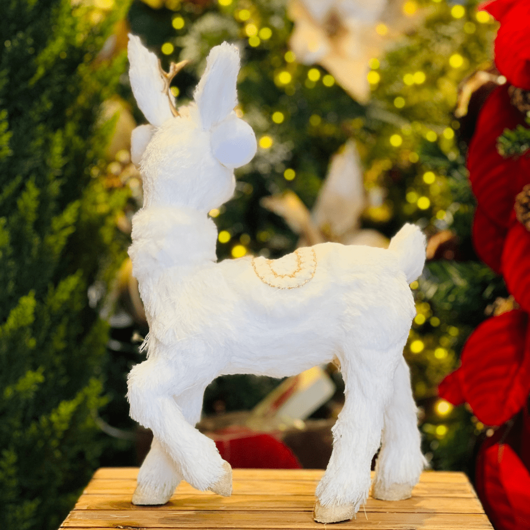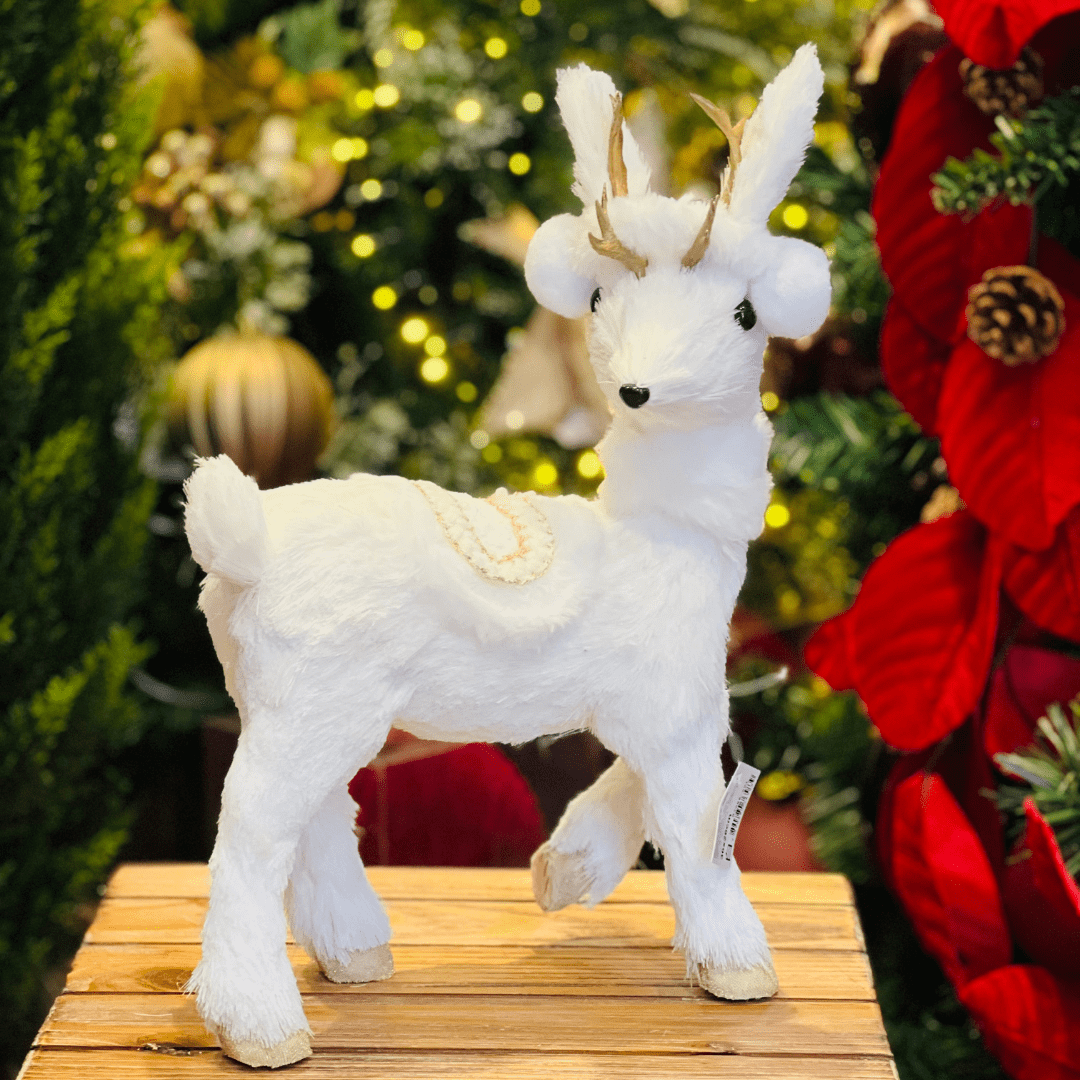 A Rena Natalina Branco e Dourado de Sisal 36x26cm traz charme e elegância à decoração de fim de ano. Seu design delicado combina o brilho do dourado com a suavidade do branco, criando um visual sofisticado e acolhedor. Ideal para compor centros de mesa, aparadores ou cenários natalinos com estilo e requinte.