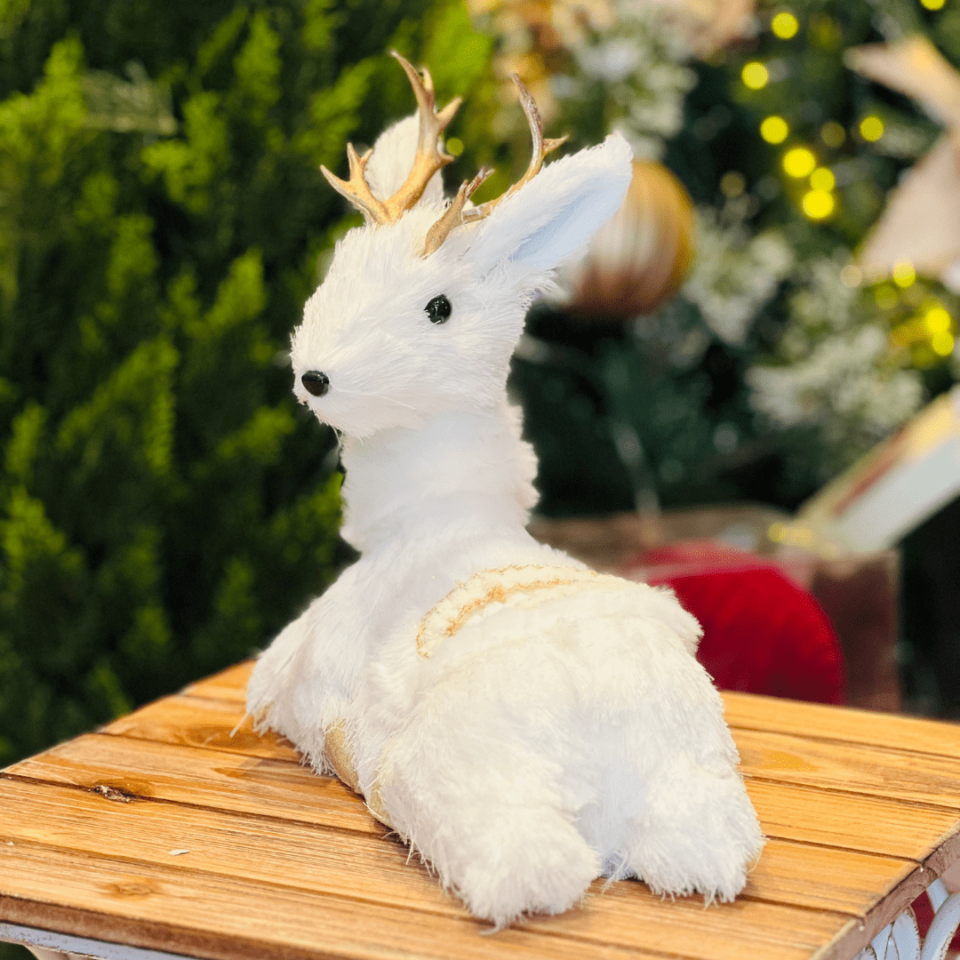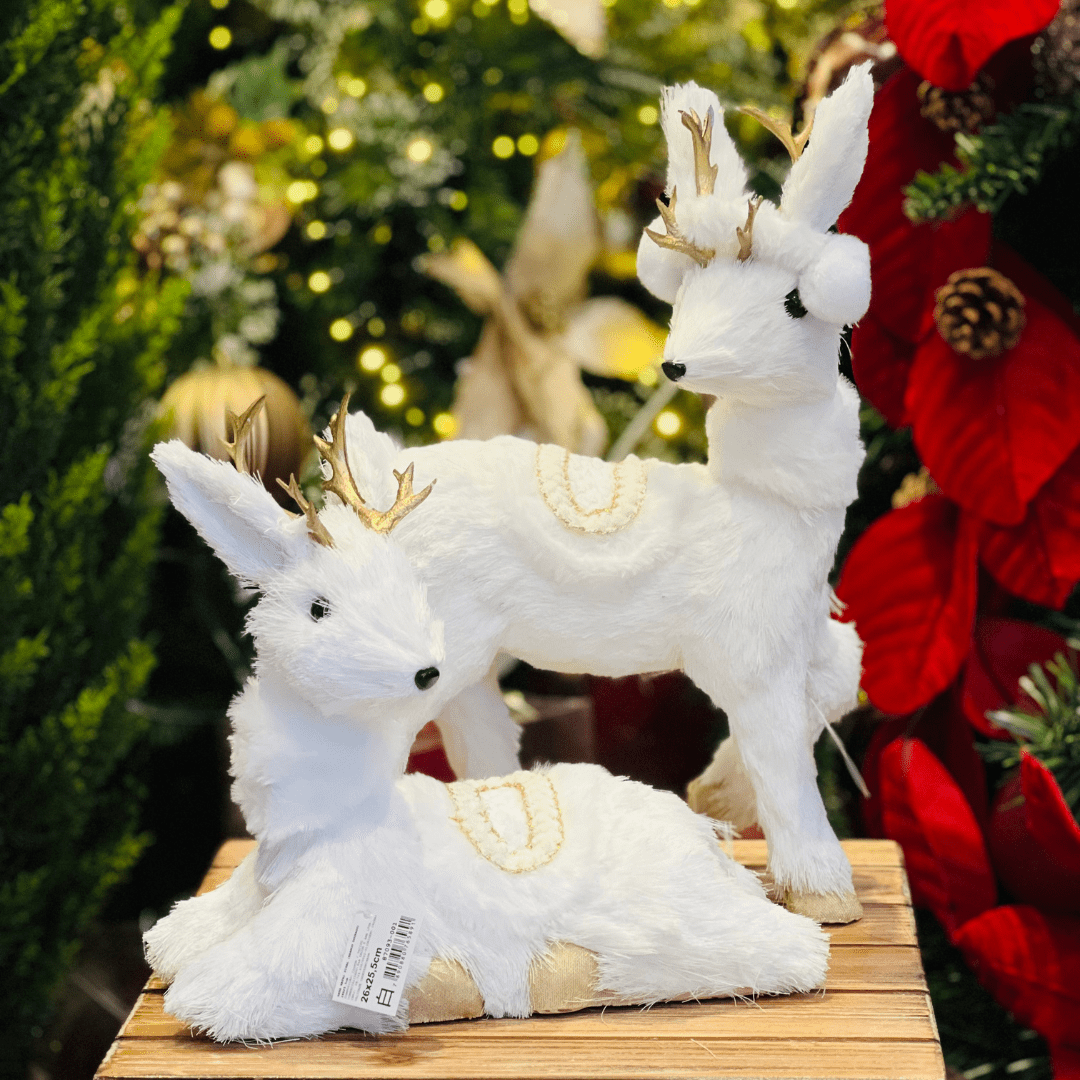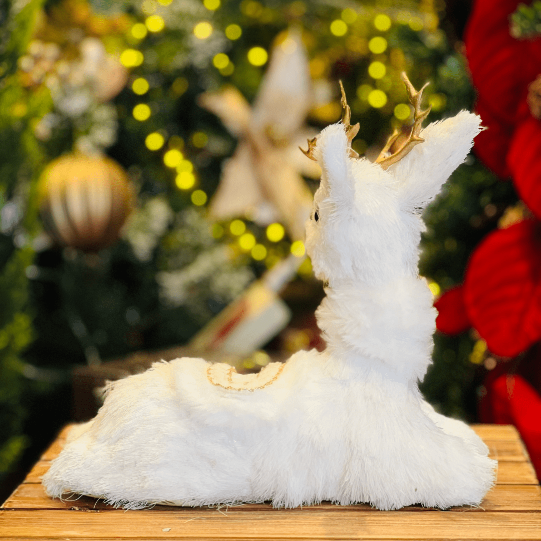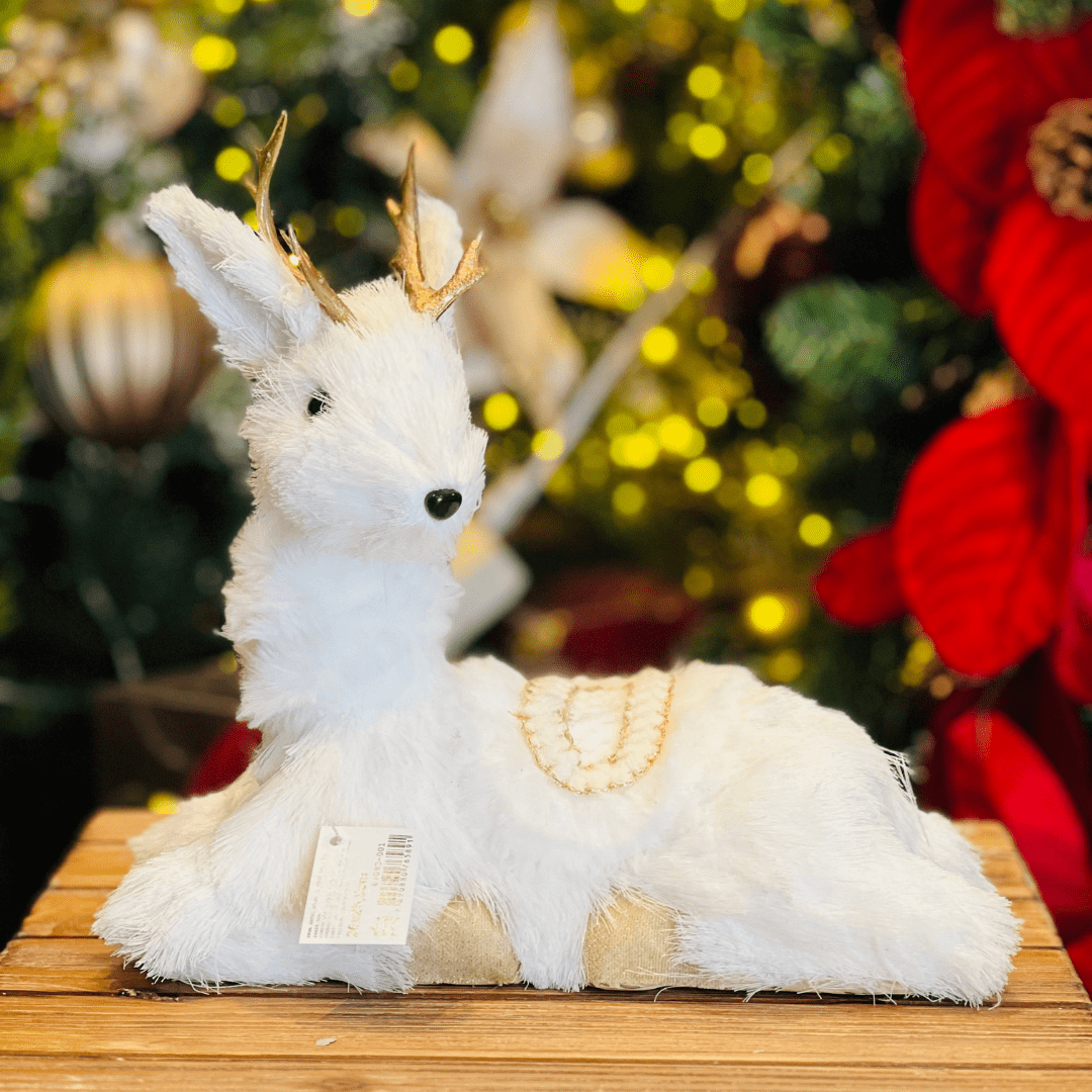 A Rena Natalina Deitada Branco e Dourado Sisal 26x25,5cm é um enfeite elegante e delicado para a decoração natalina. Produzida em sisal nas cores branco e dourado, a peça deitada é perfeita para mesas, aparadores ou prateleiras, trazendo charme e sofisticação aos cenários de Natal.