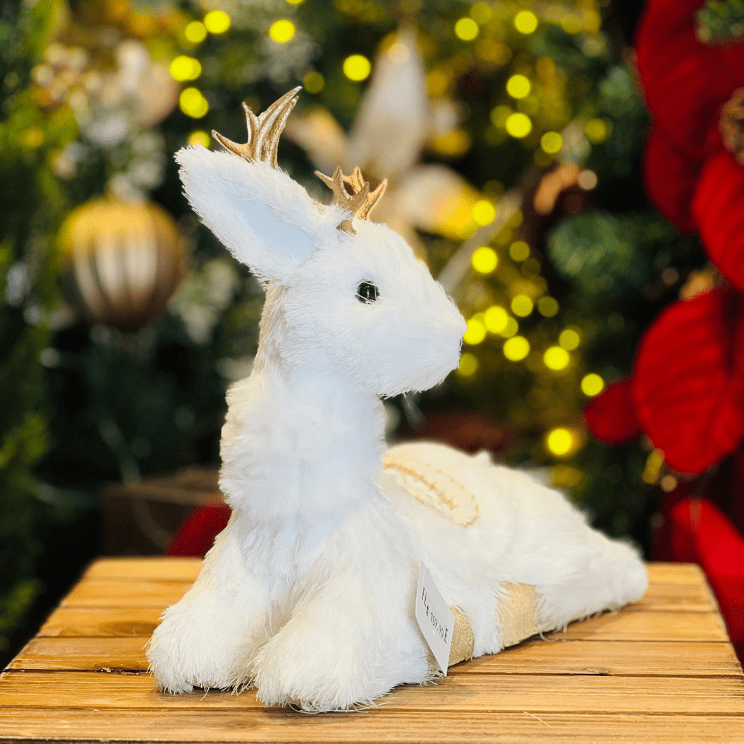Rena Natalina Deitada Branco e Dourado Sisal 26x25,5cm