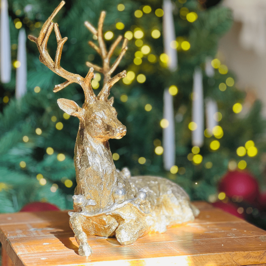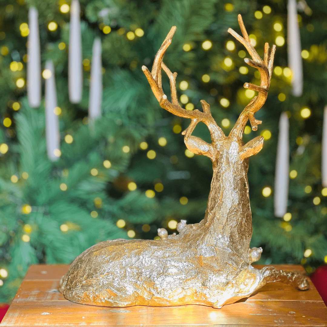 Rena Natalina Deitada Dourada de Resina 34,5cm