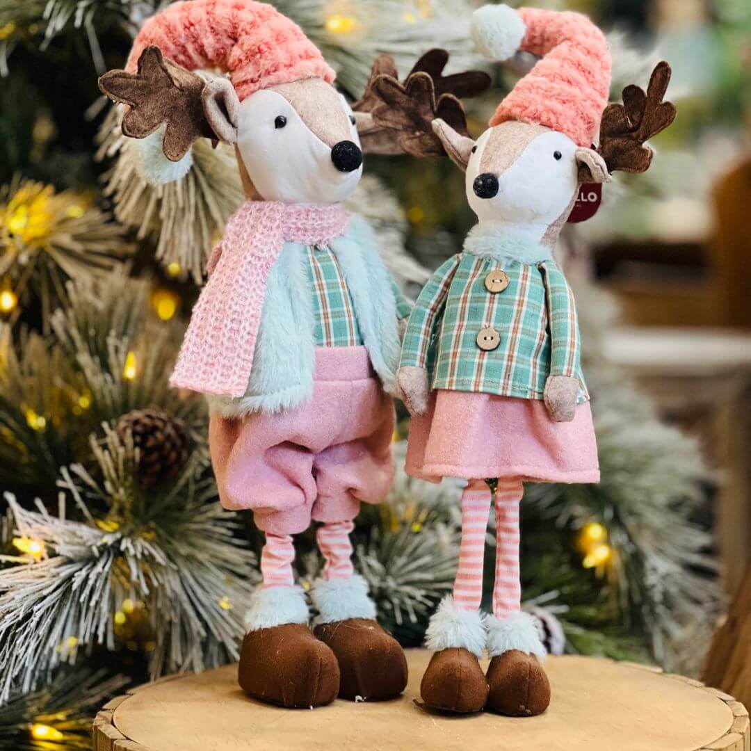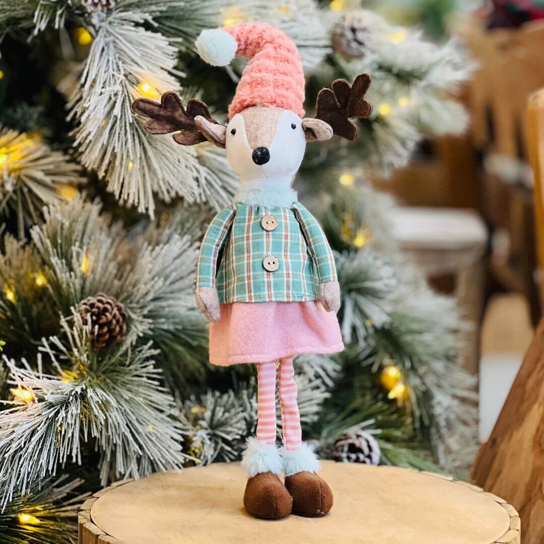 A Rena Natalina Fêmea Pêssego e Azul é uma peça encantadora que traz delicadeza e elegância à decoração de Natal. Com tons suaves e detalhes cuidadosamente trabalhados, ela é ideal para compor cenários festivos com um toque de ternura e originalidade.