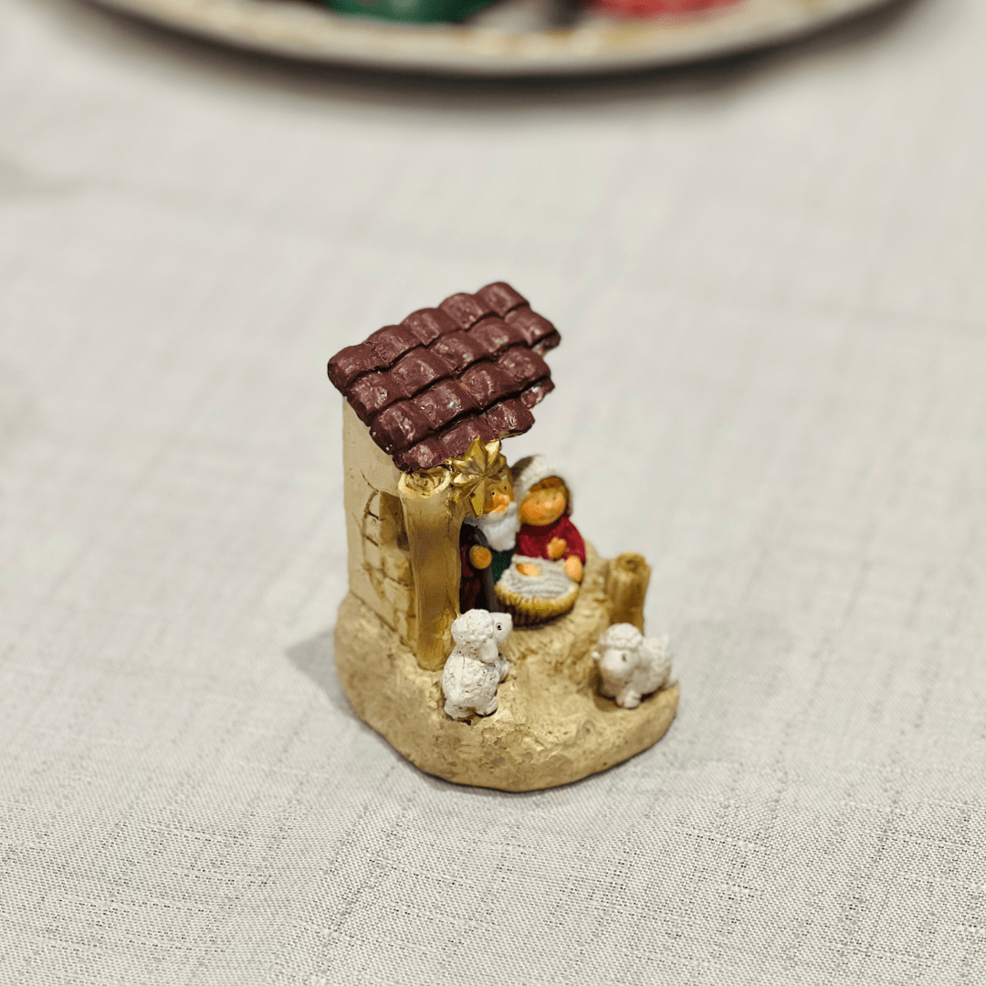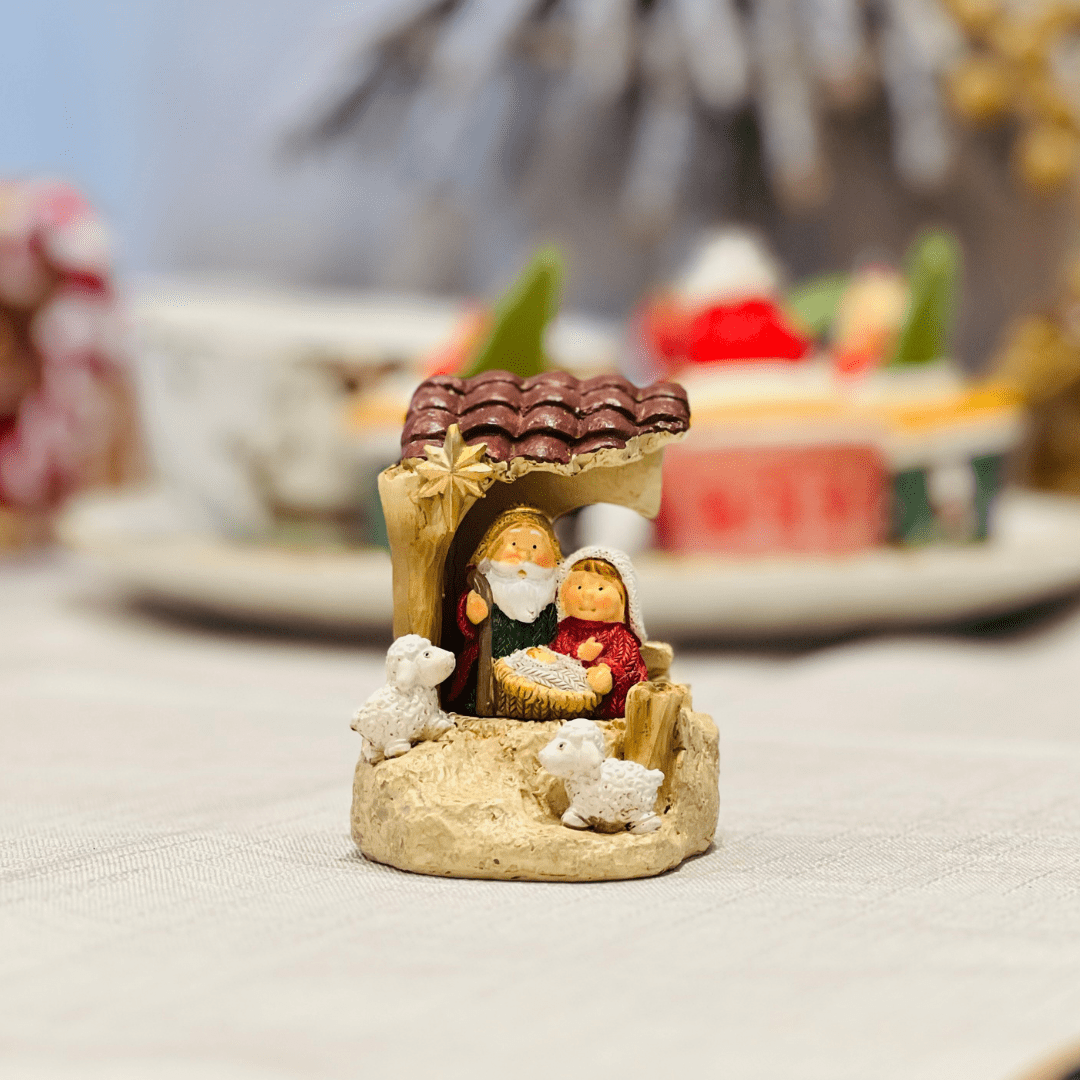 Com 8,5 cm de altura, é compacta e delicada, mas cheia de detalhes que valorizam a cena sagrada do nascimento de Jesus. Um item que une beleza, religiosidade e tradição, ideal para enriquecer sua decoração com emoção e simbolismo.