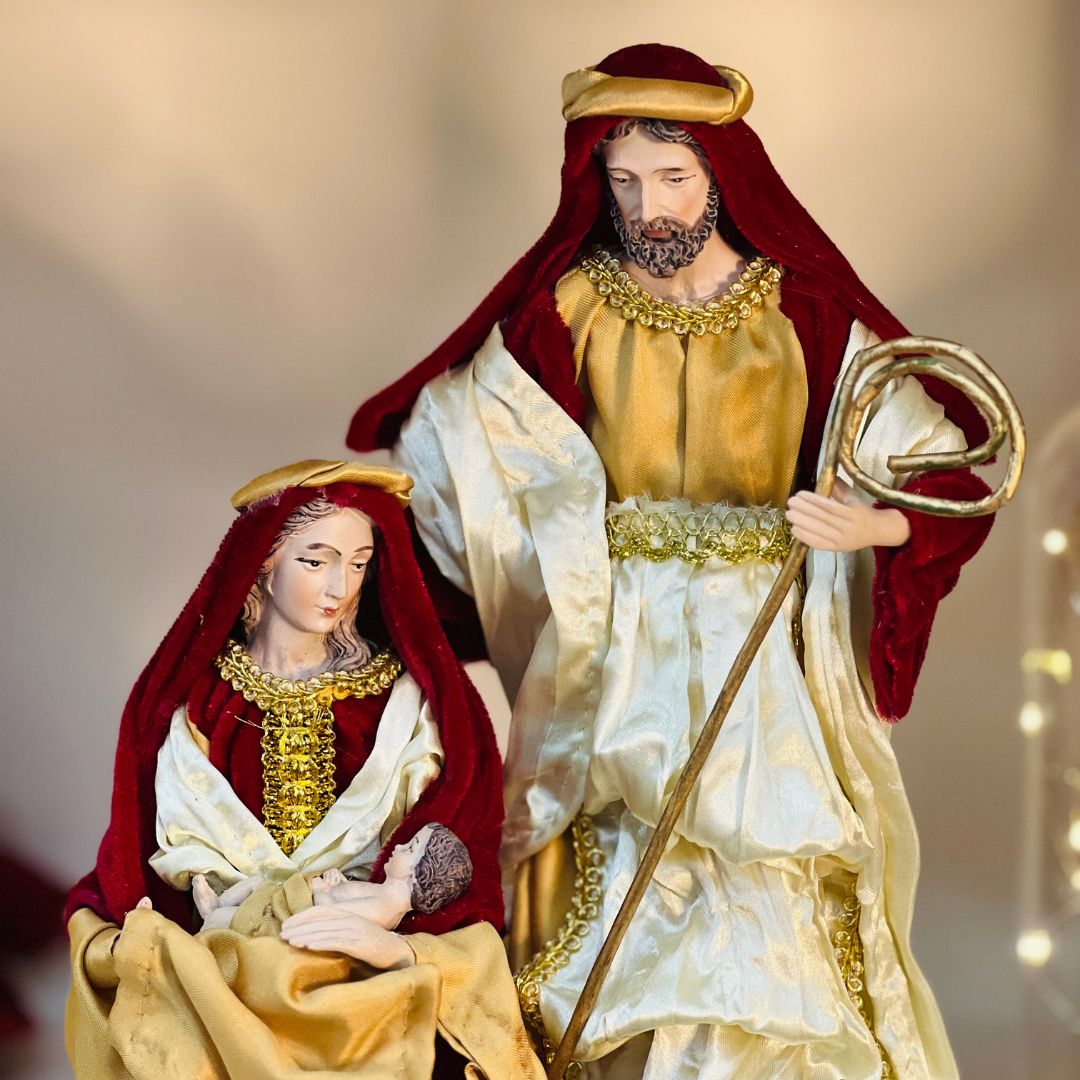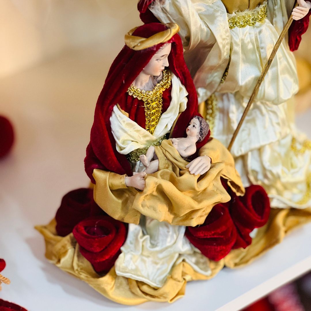 A Sagrada Família em tons de vermelho e dourado é uma peça que simboliza fé, amor e união. Com detalhes delicados e acabamento refinado, ela é ideal para enaltecer o espírito natalino na sua decoração, trazendo um toque de nobreza e serenidade ao ambiente.