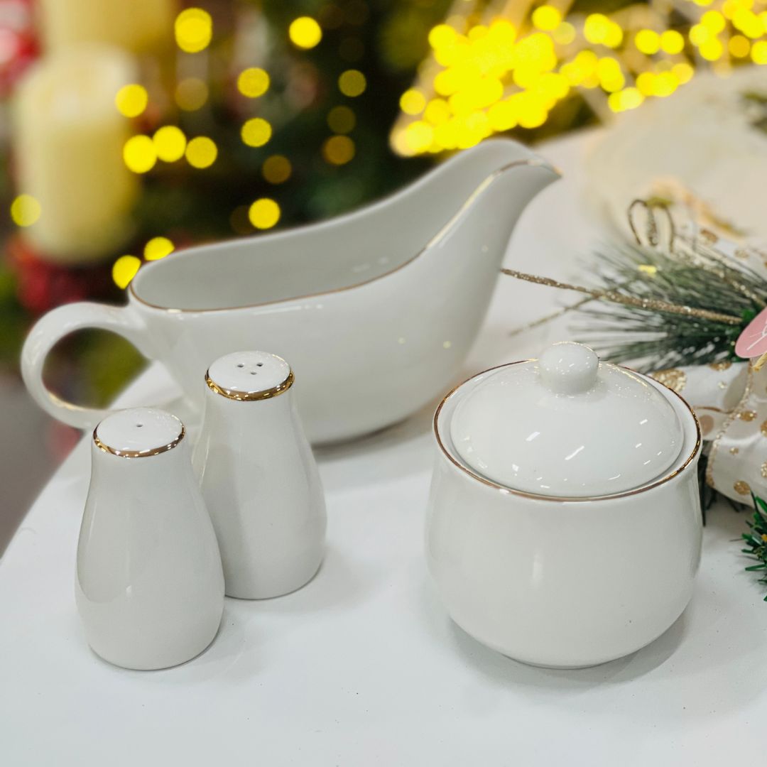 Saleiro e Pimenteiro Branco Com Borda Dourada - 8,5cm