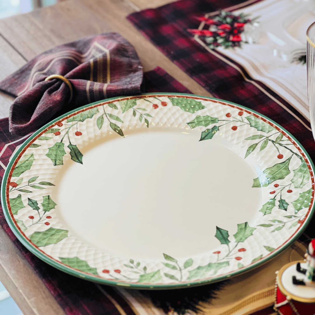 Decore sua mesa de Natal com este sousplat da linha Azevinho. Produzido em cerâmica, é ideal para complementar a apresentação de pratos, trazendo elegância e sofisticação à sua mesa posta durante as celebrações natalinas.