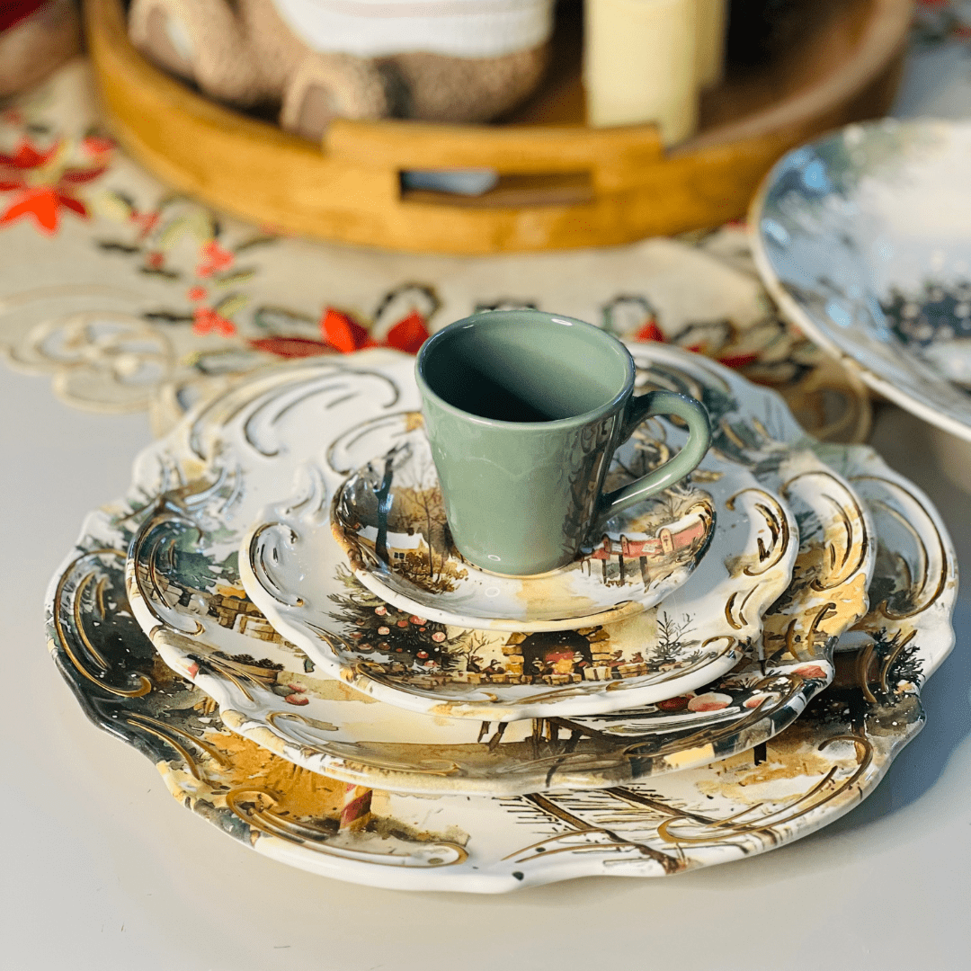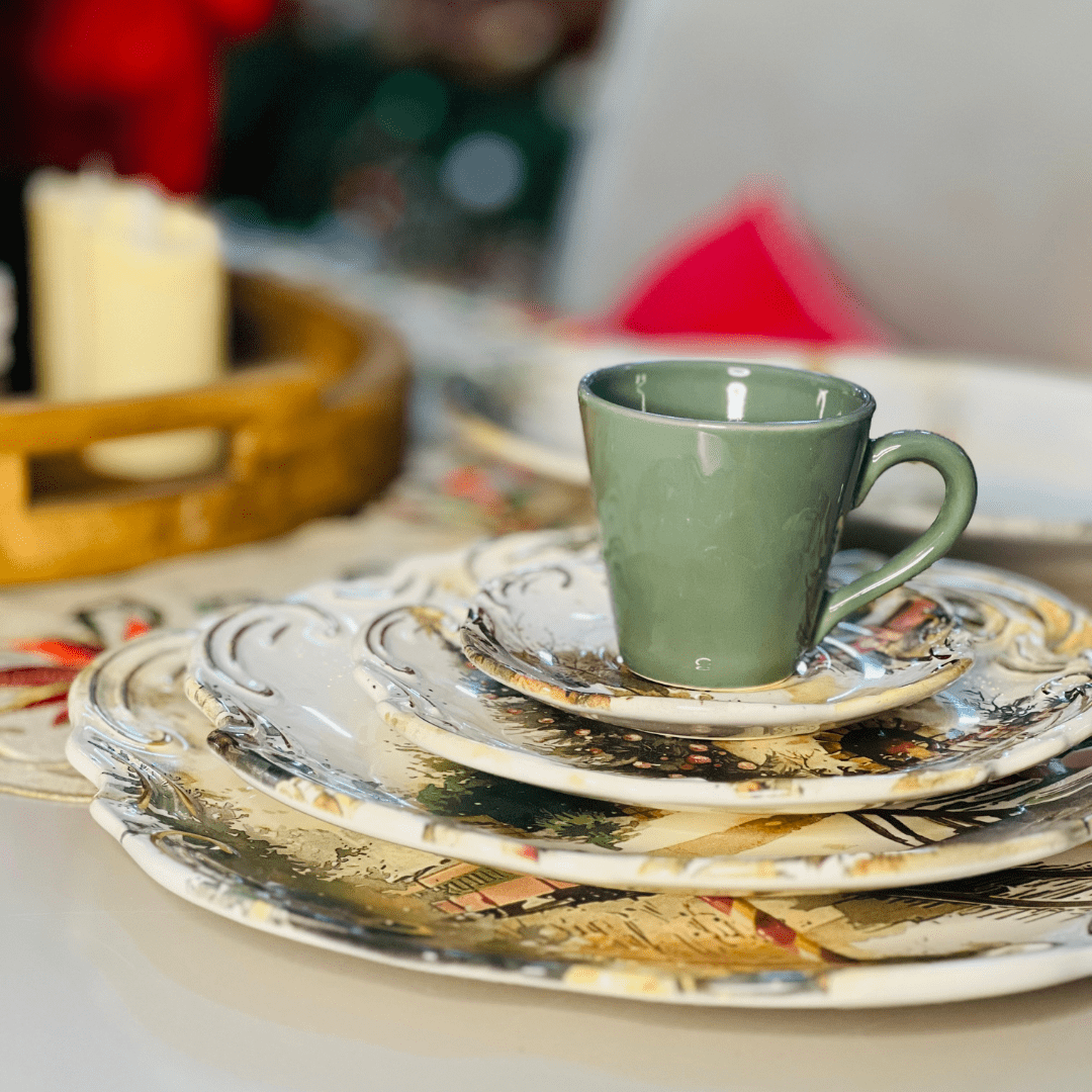 O Sousplat Noite de Neve de Cerâmica 34cm traz elegância e charme para a sua mesa posta, com um design inspirado em paisagens nevadas que adiciona um toque sofisticado ao clima natalino. Produzido em cerâmica resistente, possui acabamento detalhado que valoriza a decoração e proporciona uma base estável para pratos, deixando a composição ainda mais encantadora.