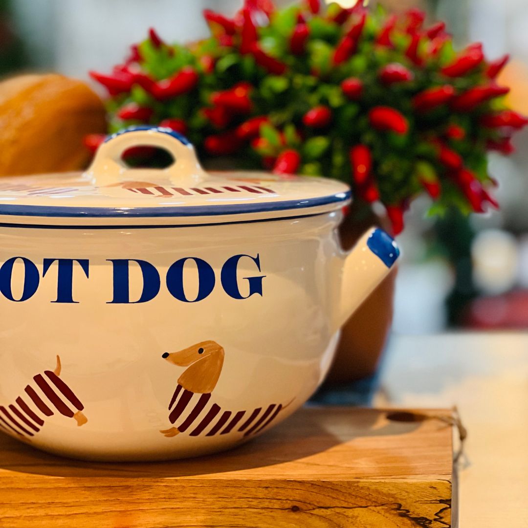 A Terrina com Tampa Hot Dog é uma peça charmosa e funcional, ideal para servir sopas, caldos ou acompanhamentos com um toque divertido. Com estampa temática e tampa que mantém a temperatura dos alimentos, ela é perfeita para compor uma mesa descontraída e cheia de personalidade.