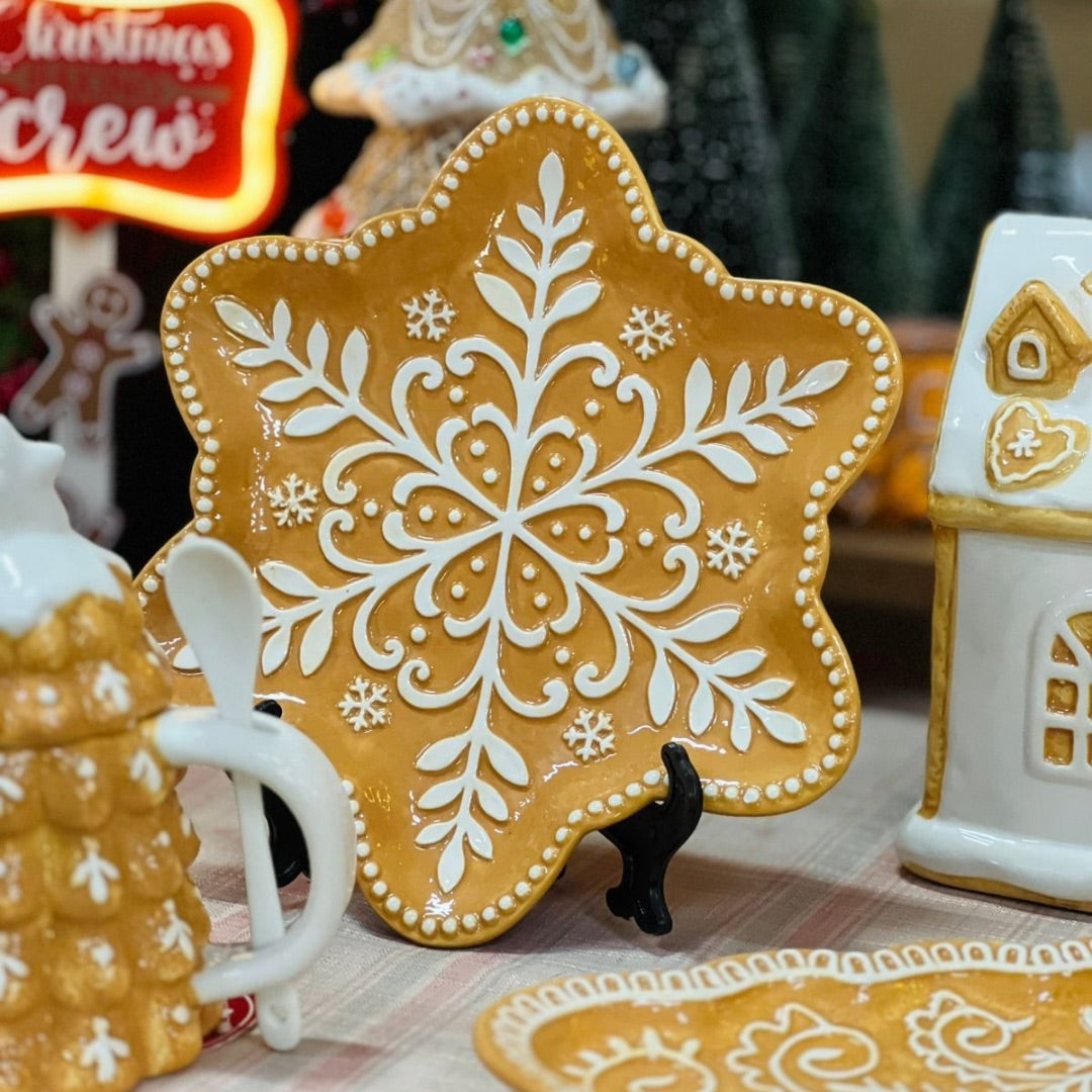 Delicada e cheia de charme, a Travessa em Formato de Floco de Neve Ginger é perfeita para compor uma mesa temática ou dar um toque especial à decoração de inverno e Natal. Uma peça versátil, que une beleza e praticidade na hora de servir.