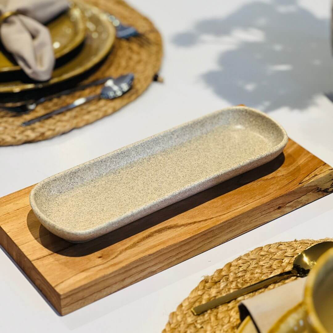 A Travessa Oval Kobe na cor creme une simplicidade e sofisticação em um design funcional e contemporâneo. Ideal para servir entradas, petiscos ou acompanhamentos com elegância, ela se destaca pelo acabamento fosco e formato alongado que valoriza a apresentação à mesa.