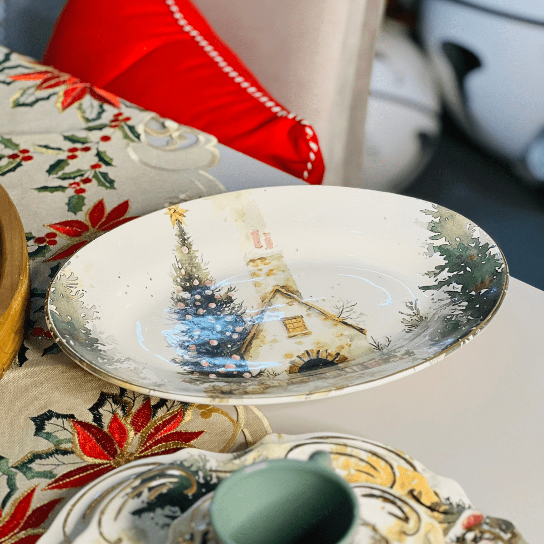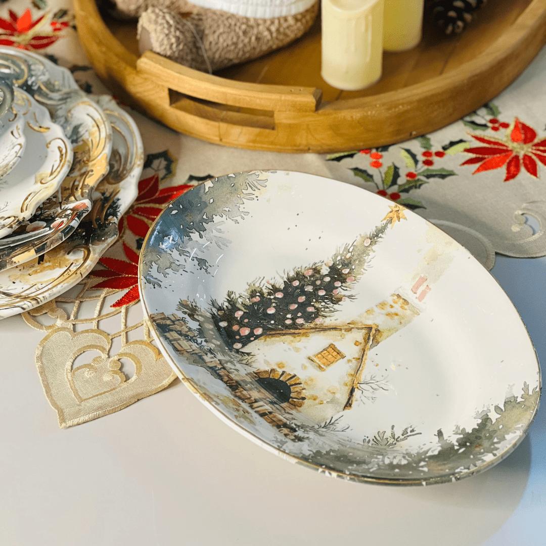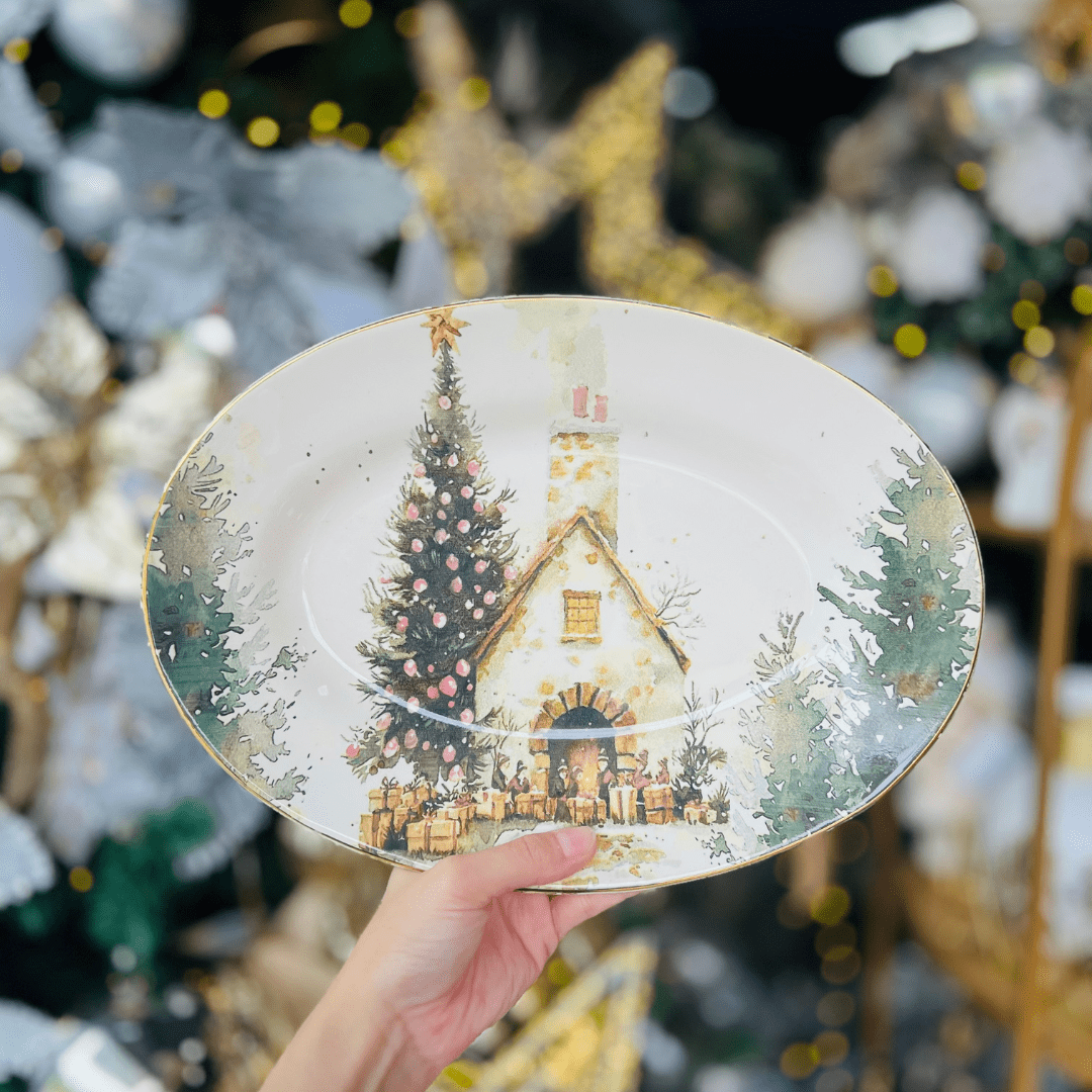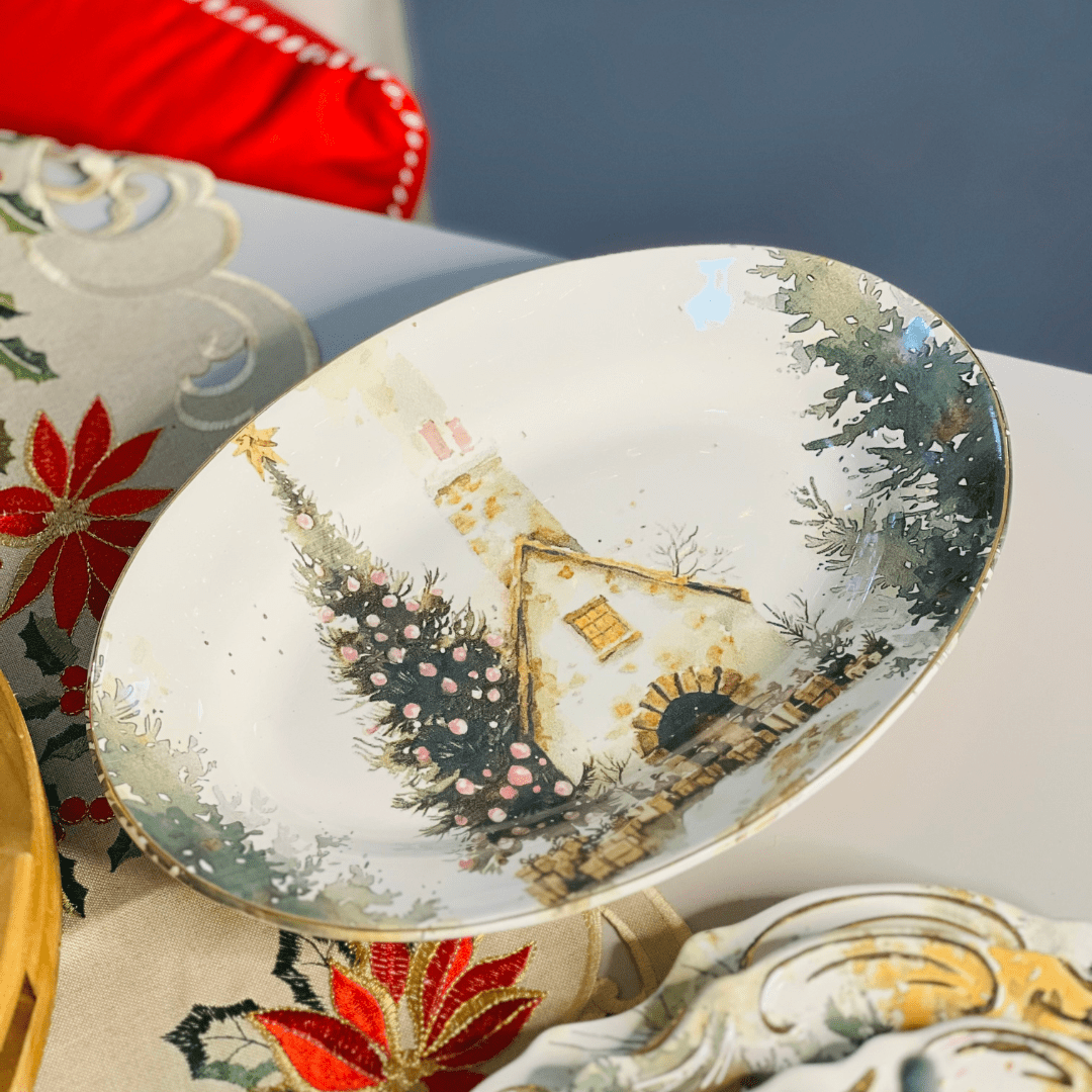 Travessa Pequena Noite de Neve de Cerâmica 33x23x5cm