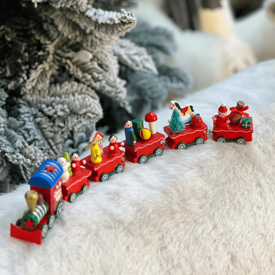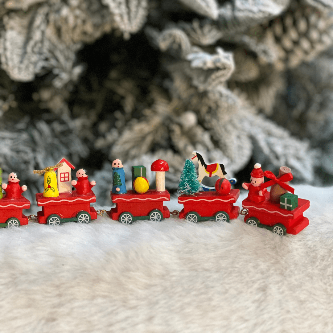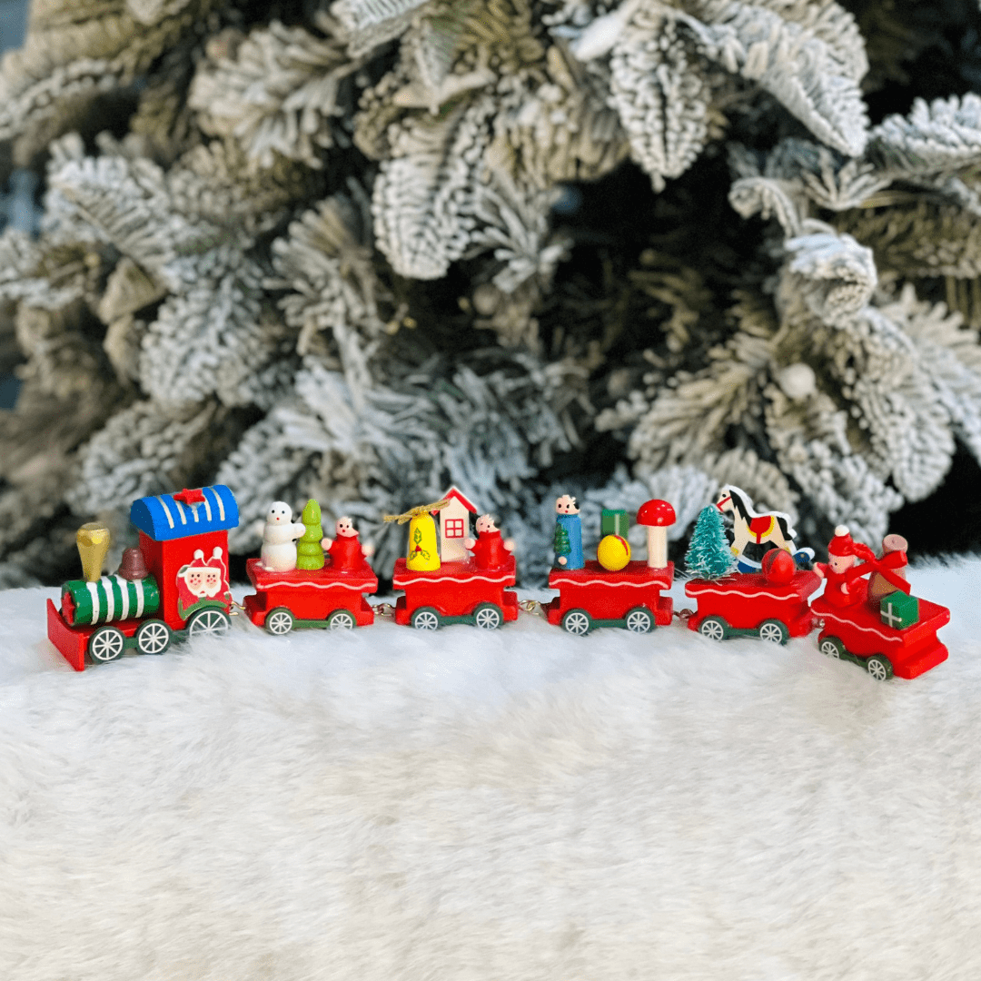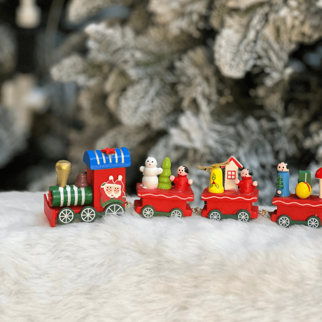 Trem Natalino Colorido 6 Vagões de Madeira 32x5,5x4cm