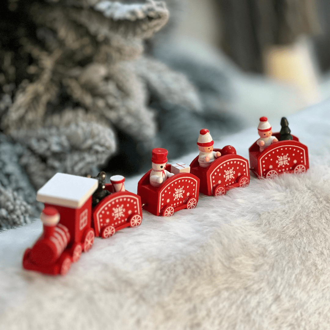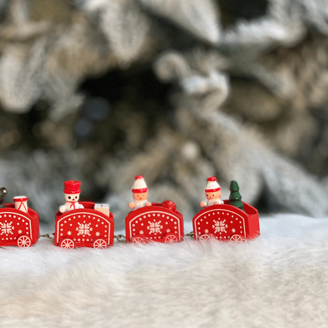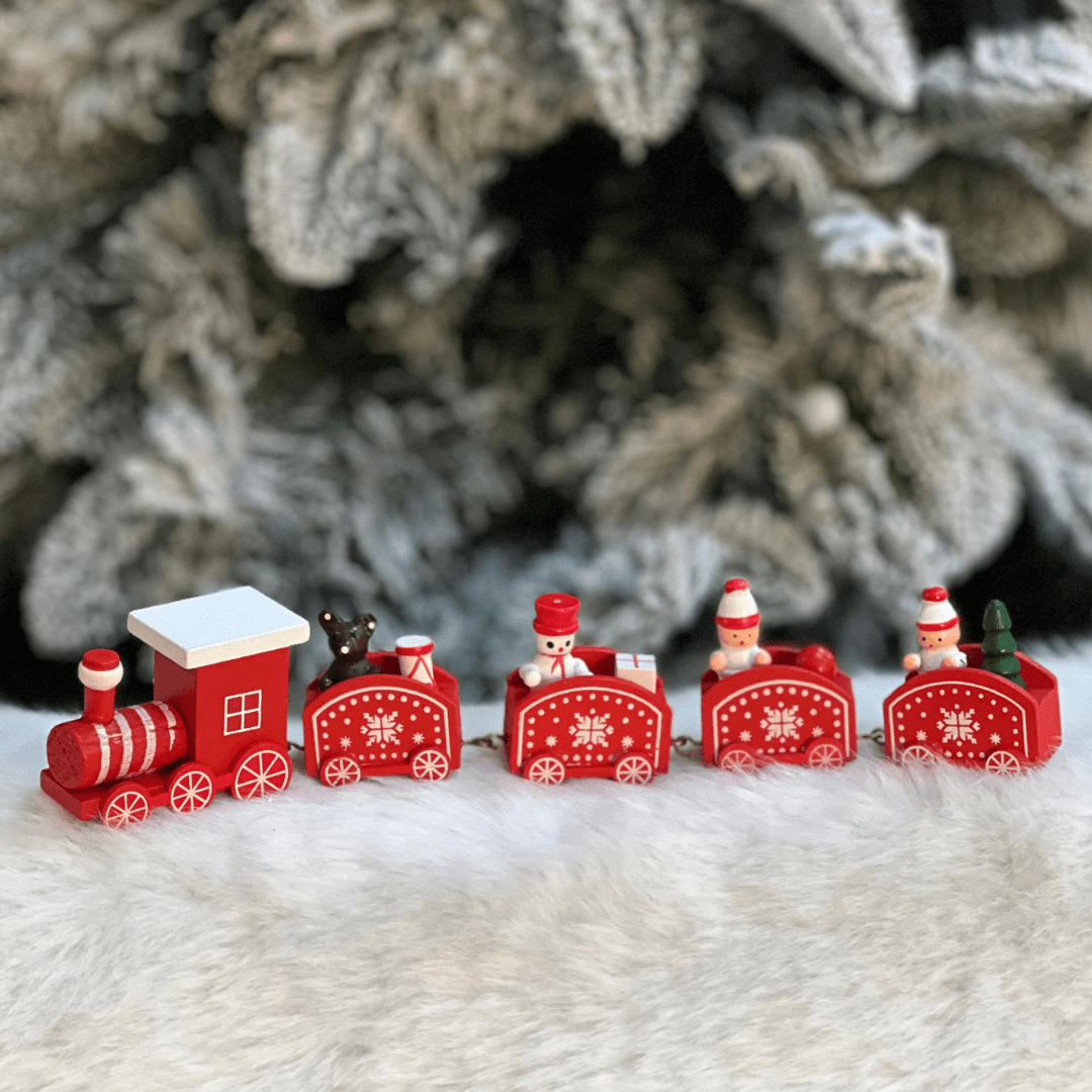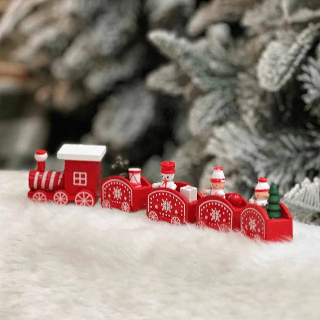 Trem Natalino Vermelho e Branco de Madeira 27,5x5,8x2,8cm