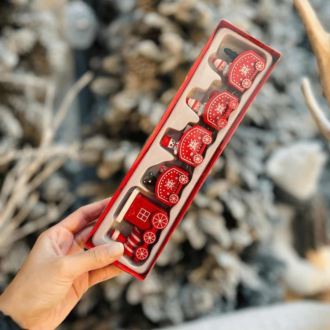 O Trem Natalino Vermelho e Branco de Madeira é uma peça clássica e charmosa para compor a decoração de Natal. Com design detalhado e acabamento nas cores tradicionais da época, ele é ideal para enfeitar mesas, aparadores ou prateleiras, trazendo um toque festivo e acolhedor ao ambiente.