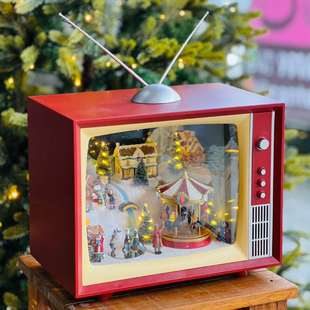 TV Natalina Com Luzes, Movimento e Som - 37,34x23,1x45cm