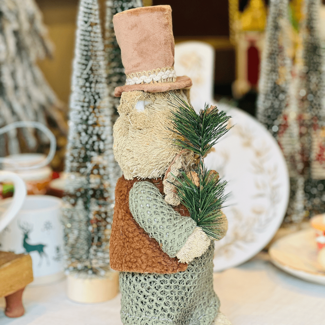 Urso Natalino de Cartola Marrom e Verde 33x18cm