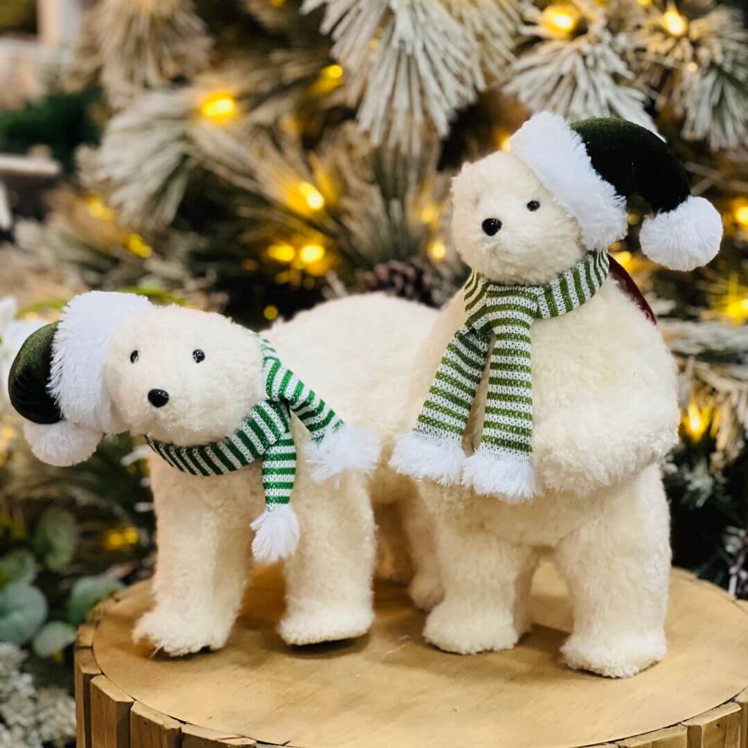 Urso Polar Natalino Em Pé Bege e Verde 30cm