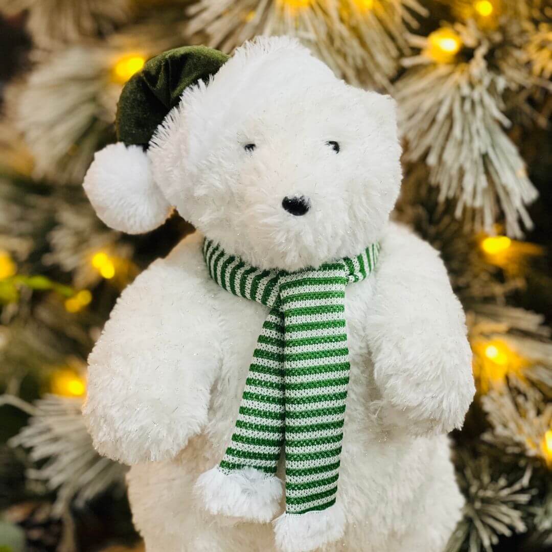 Urso Polar Natalino Em Pé Branco e Verde 38x20cm