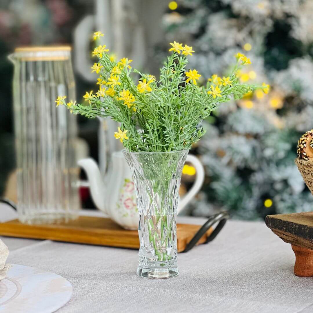 Com design elegante e acabamento, o Vaso de Vidro Diamond é ideal para compor ambientes sofisticados com um toque de brilho. Sua estrutura em vidro translúcido valoriza arranjos florais naturais ou artificiais, além de ser uma peça decorativa por si só. Perfeito para salas, aparadores, mesas ou ambientes comerciais.