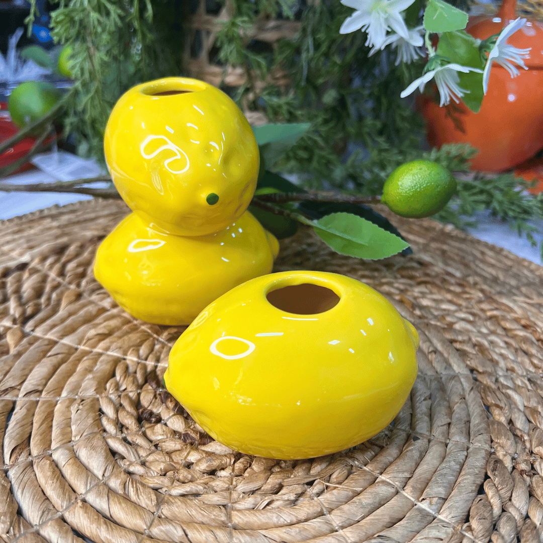 O Vaso Limão Duplo Tutti-Frutti de Cerâmica é uma peça decorativa criativa e cheia de personalidade, ideal para trazer um toque alegre e descontraído à decoração. Com design inspirado em dois limões unidos, é perfeito para compor ambientes como cozinhas, varandas, salas ou espaços gourmet. Pode ser utilizado como vaso decorativo, cachepô para pequenas plantas ou como elemento ornamental em composições criativas.