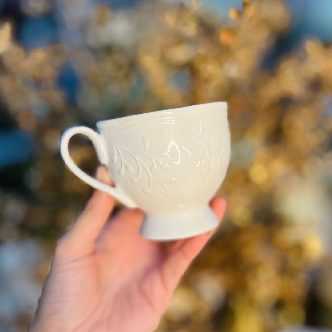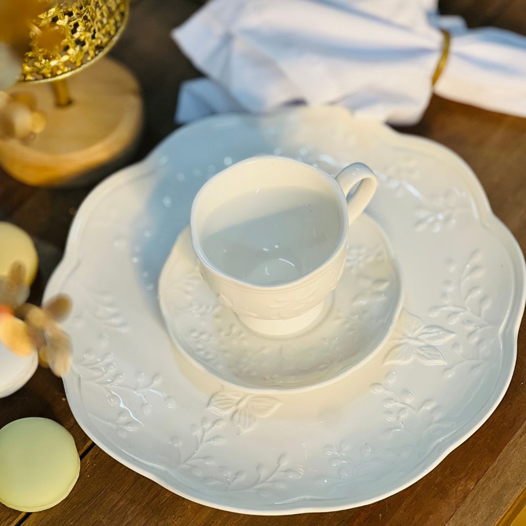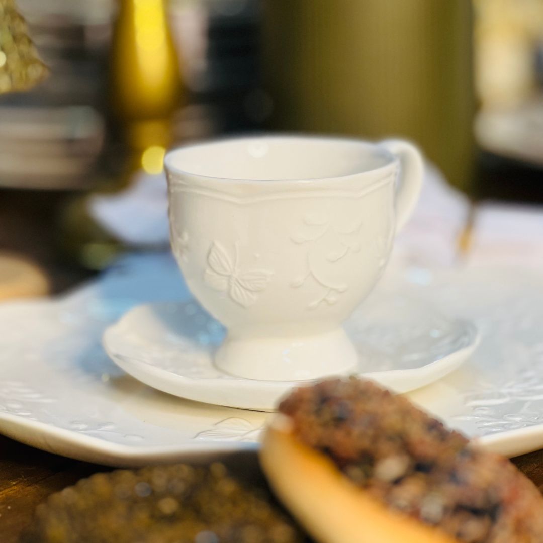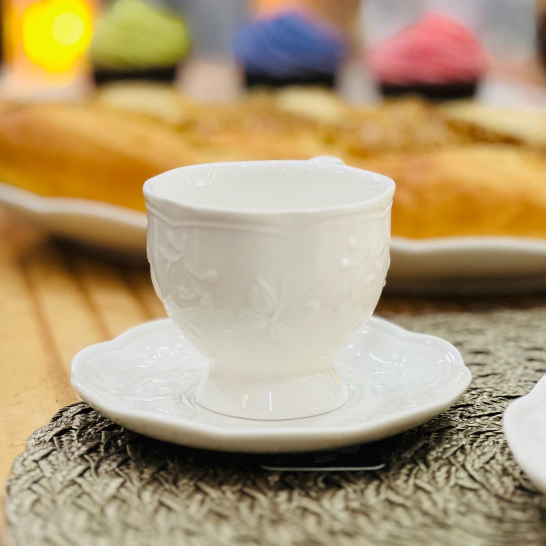 Desfrute de momentos especiais com a Xícara Com Pires Butterfly Flower, feita de porcelana New Bone, conhecida por sua delicadeza e durabilidade. Decorada com um design de flores e borboletas, essa peça é ideal para servir café ou chá com elegância e charme.