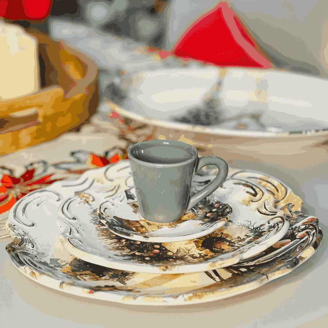 Xícara de Café Com Pires Noite de Neve de Cerâmica – 1un