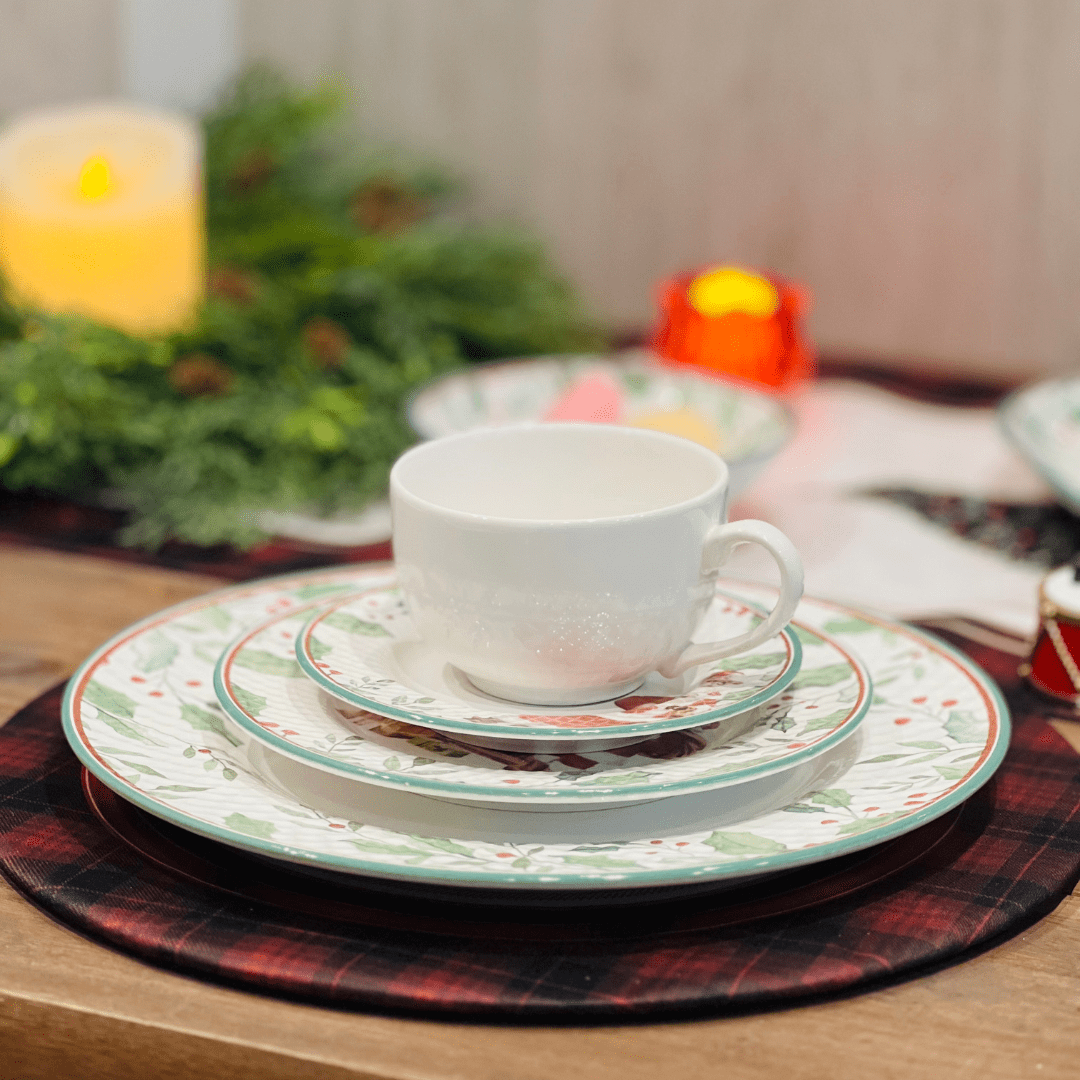 Aproveite seus momentos especiais com esta charmosa xícara de chá com pires da linha Azevinho. Produzida em cerâmica, une praticidade e elegância, sendo perfeita para servir bebidas quentes e compor sua mesa posta com o clima natalino.