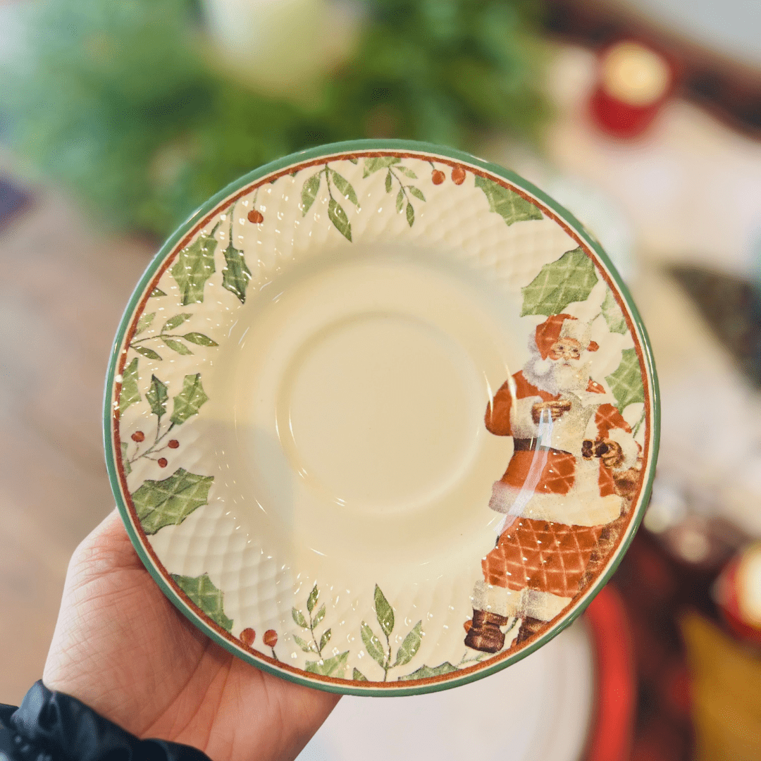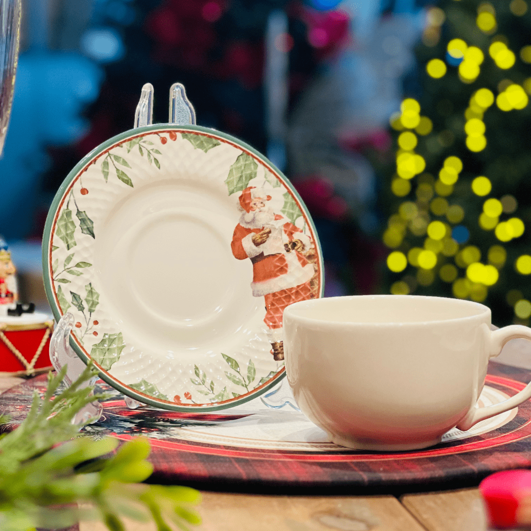 Xicara de Chá Com Pires Natalina Azevinho de Cerâmica 250ml 1un