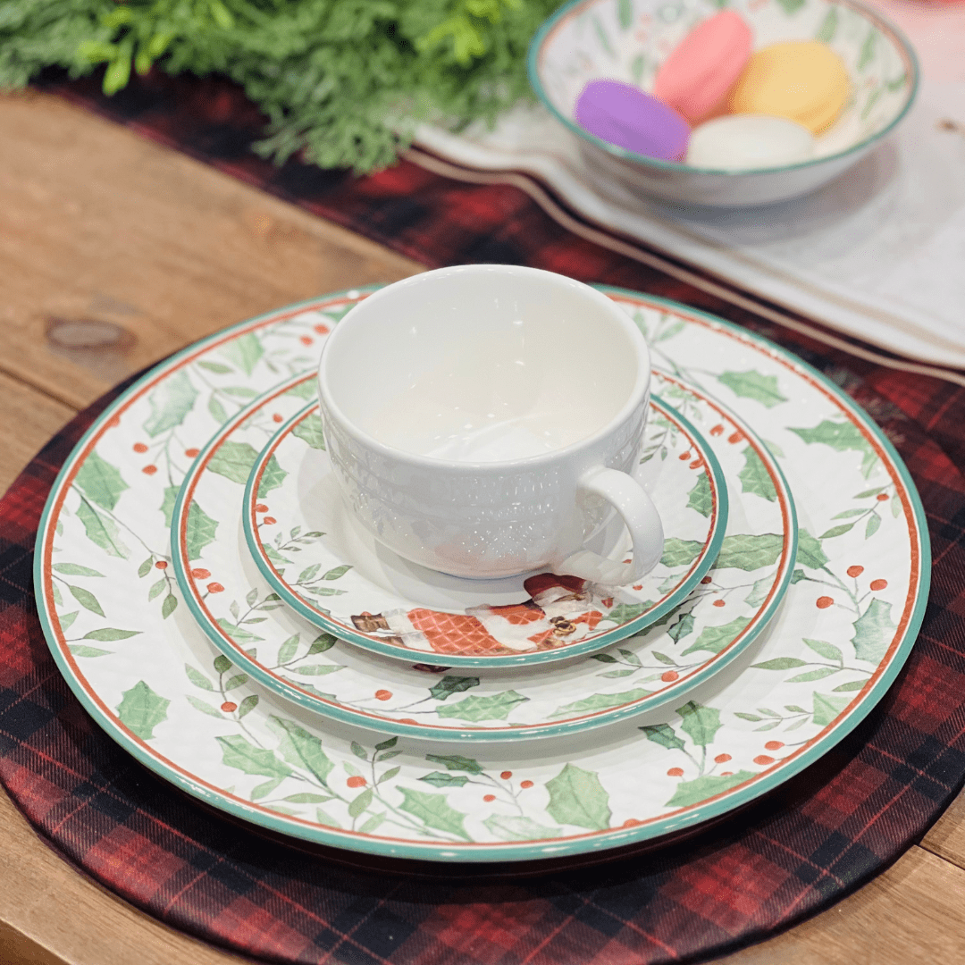 Xícara de Chá com Pires Natalina Azevinho de Cerâmica 250ml